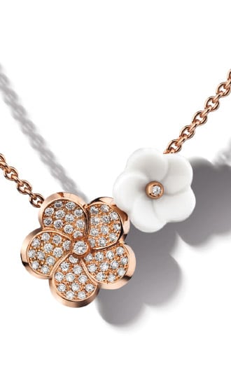 mit Kette 45cm, 750/- Roségold, 56 weiße Diamanten, Blütenstempel mit 2 weißen Diamanten, 1 Blüte in Kogolong