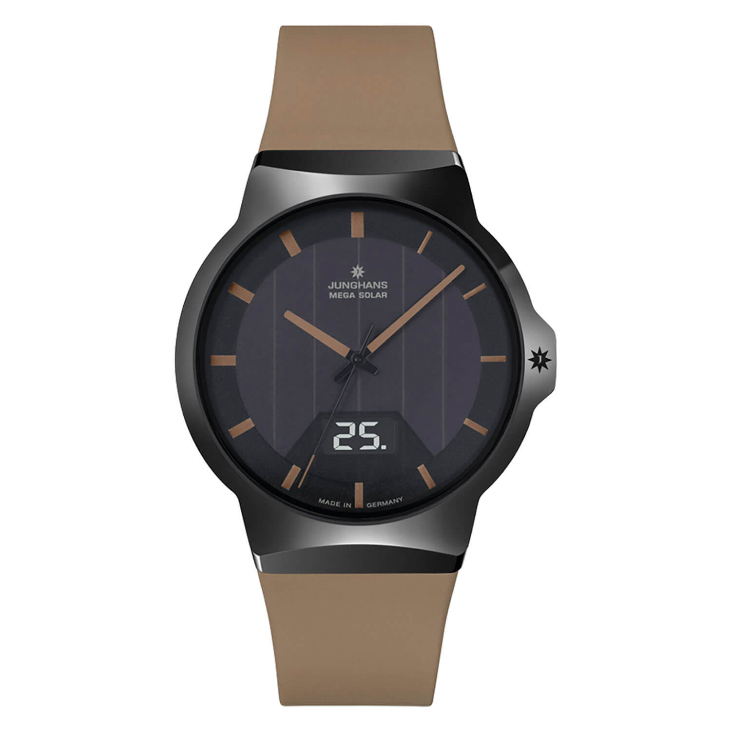 | Funktionen | Dunkelgangreserve bis zu 21 Monaten, Sleepmode nach 72 Stunden, Großdatum, komfortable Zeiteinstellung über die Junghans MEGA App |