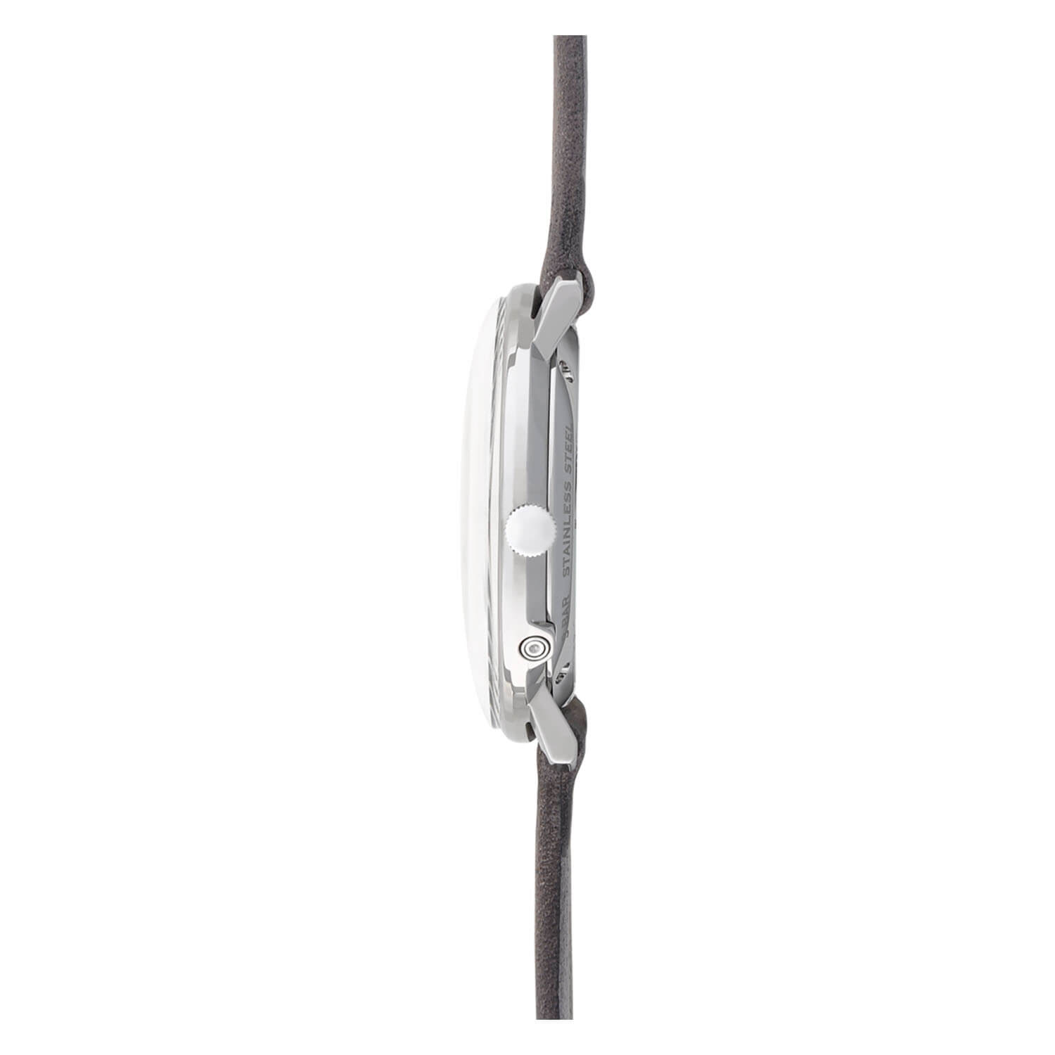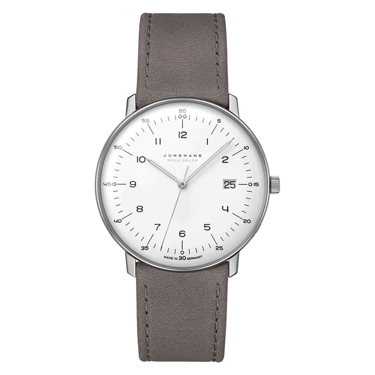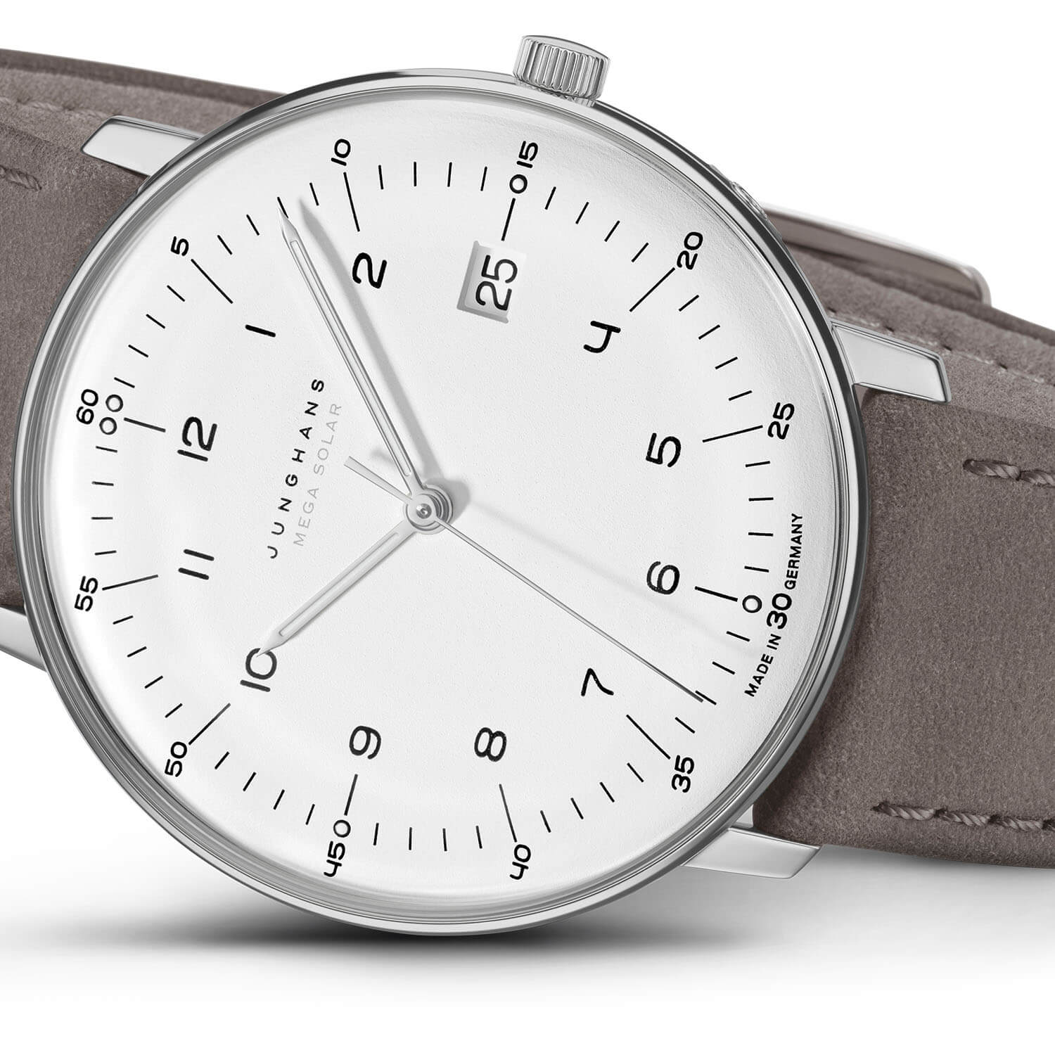 max bill MEGA Solar – Ihr minimalistisches Design bleibt immer modern, ihre Energie schöpft sie aus der Sonne. Dank des Materials Titan erlebt man die Uhr als verblüffend leicht und besonders hautfreundlich. Weiteren Komfort bieten das hochmoderne Funkwerk, ein ewiger Kalender und die einfache Einstellung der Zeitzonen per Krone oder in wenigen Sekunden mit dem Junghans eigenen Zeitsignal der Junghans MEGA App. Auch das Design der max bill MEGA Solar steht ganz im Zeichen der Nachhaltigkeit: Die Bauhaus-typische minimalistische Formensprache bleibt modern – gestern, heute, morgen und übermorgen.