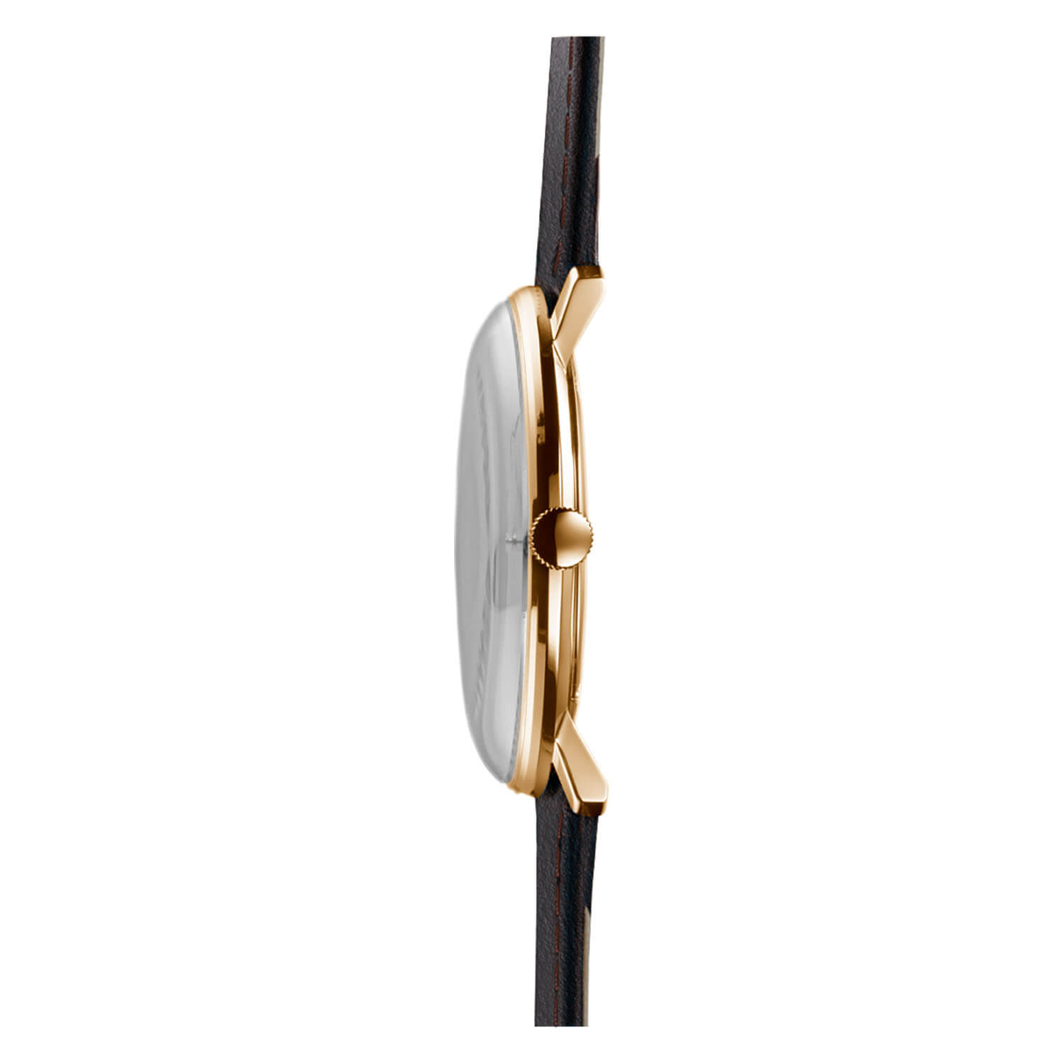 Neben den klassischen mechanischen Antrieben ist der Designklassiker auch mit einem hochwertigen Quarzwerk erhältlich. Immer einsatzbereit ist der puristische Zeitmesser ein zuverlässiger Begleiter.