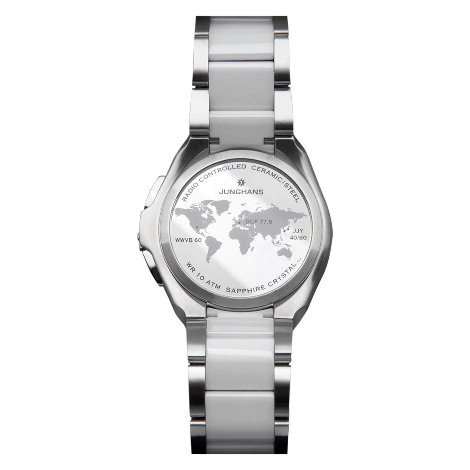 Kühler Edelstahl, kratzfeste Keramik und eine Wasserdichtheit bis 10 bar machen die Spektrum Damen zu unserer sportlichsten Funkuhr für aktive und unabhängige Trägerinnen. Für absolute Präzision sorgt das Junghans Multifrequenz-Funkwerk, das allein durch die Energie der Sonne angetrieben wird. So erweist sich die Spektrum Mega Solar nicht nur als besonders präziser, sondern gleichzeitig auch als besonders ressourcenschonender Zeitmesser am femininen Handgelenk.